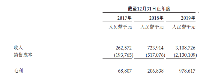 观察该公司业绩可以发现,2017年—2019年,三巽控股营收为2.63亿元、7.24亿元、31.09亿元;毛利为6880.7万元、2.07亿元、9.79亿元,毛利率为26.2%、28.6%、31.5%。2018年及2019年,该公司业绩都实现了惊人增长。