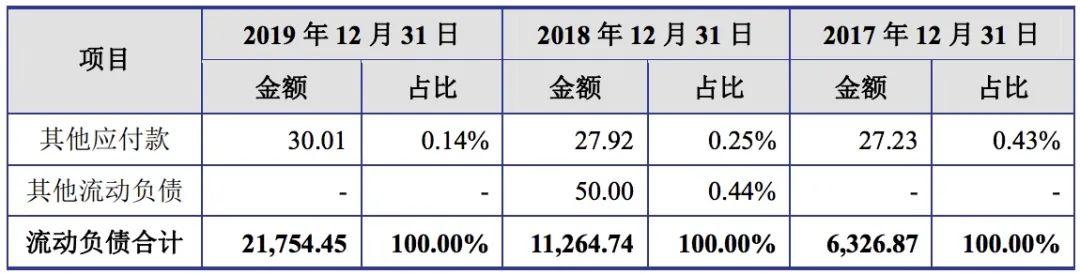 然而,《投资时报》研究员注意到,标榜股份的流动负债数额涨幅较大。报告期内,该公司流动负债分别为0.63亿元、1.13亿元和2.18亿元,2018年及2019年较上一年的涨幅分别高达78.05%和93.12%。