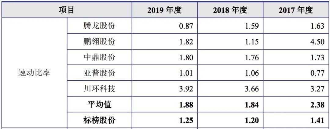 标榜股份与同业上市公司2017年—2019年流动比率、速动比率情况