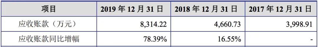 此外,报告期内,标榜股份应收账款分别达到0.40亿元、0.46亿元和0.83亿元,相较于2018年,2019年该指标出现大幅上涨,涨幅高达78.39%。不过,该公司应收账款占营业收入的比例一直持续在14%左右。