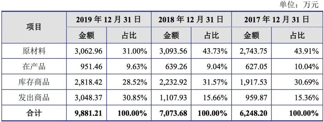 标榜股份2017年—2019年各期末存货金额及构成情况