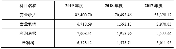 招股书数据显示,报告期内,鑫铂股份营业收入分别为分别为5.83亿元、7.05亿元、9.24亿元,呈现逐年增长趋势。同时,鑫铂股份的净利润分别为3011.95万元、1578.74万元、6328.42万元,其中2018年、2019年较上年同比增长分别为-47.58%、300.85%,净利润波动较大。