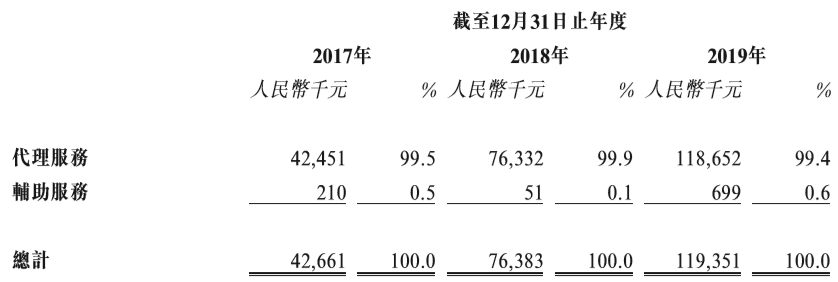 报告期各期末,其代理服务收入分别4245.1万元、7633.2万元、1.19亿元,占比均在99%以上。其中,一手画作代理服务的收入占比分别为69.4%、80%和71.7%。辅助服务则包括为企业提供策划及组织艺术类活动以及为外部销售提供培训服务,三年里收入分别为21万、5.1万和69.9万元,占比仅为0.5%、0.1%和0.6%。