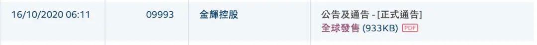 10月16日,港交所披露信息显示,金辉控股已通过上市聆讯,股票代码确定为9993,并公布发行价格区间、发行规模及时间表,预期将于10月29日在港股正式挂牌上市。