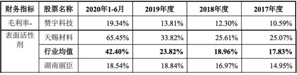 然而,需要留意的是,湖南丽臣作为一家长期致力于研发生产中高端表面活性剂产品的企业,虽然经过多年发展,逐步树立了在中高端产品领域的优势地位。但近年来,湖南丽臣该产品的毛利率却远低于同行业可比上市公司。