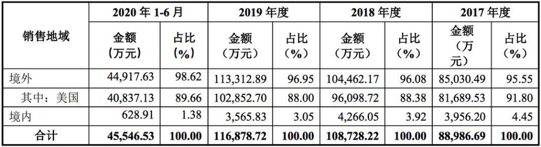 值得关注的是,匠心家居自成立以来主要面向国际市场开展生产经营,虽然该公司在招股书中解释称,公司的客户较为稳定,且不存在对单一客户销售比例超过主营业务收入50%的情况,亦不存在严重依赖于少数客户的情形。但《投资时报》研究员查阅匠心家居招股书发现,其客户过于依赖单一国家。
