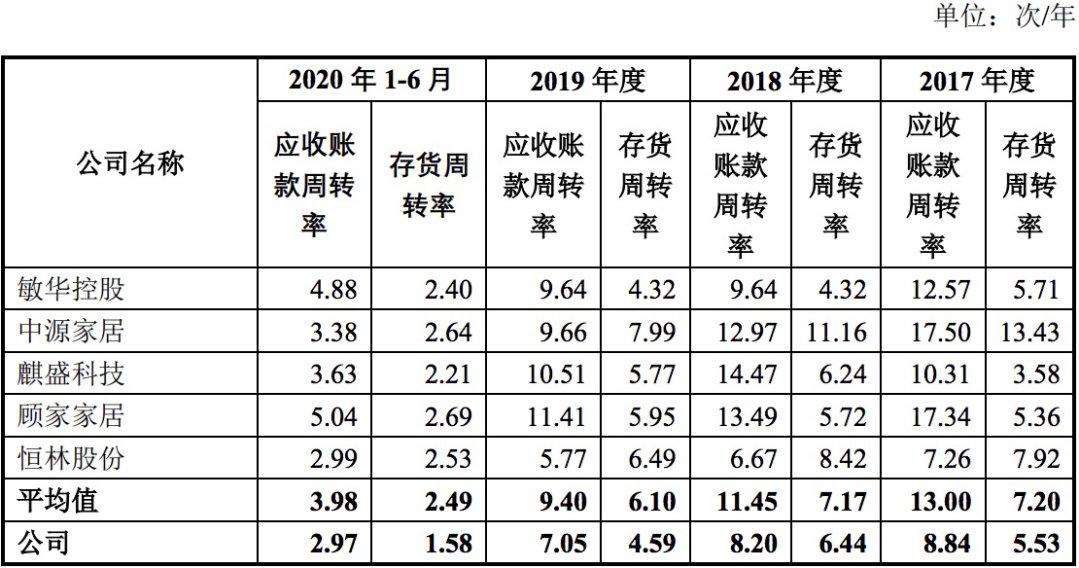 对此,匠心家居在招股书中的解释为,周转率下滑的主要原因在于公司收入增长过快、2019年下半年新增匠心越南产能,从而导致期末应收账款和存货余额增加较多。其表示,公司营运能力指标符合行业特点、处于正常水平。