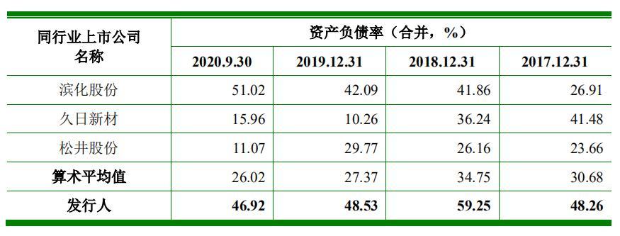 而环洋股份50%上下的资产负债率,更远高于同行可比公司在30%上下浮动的平均值。