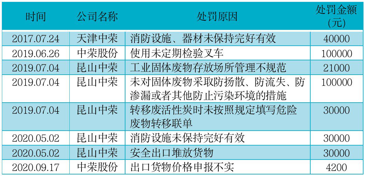此外,中荣股份及其子公司天津中荣印刷科技有限公司、中荣印刷昆山有限公司,还因消防安全生产等违规行为先后遭到行政处罚共计约35.5万元。具体原因包括消防设施、器材未保持完好有效,工业固体废物存放场所管理不规范,未对固体废物采取防扬散、防流失、防渗漏或者其他防止污染环境的措施等。