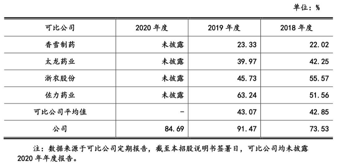而可比上市公司中,香雪制药员工薪酬占研发费用的比例在22%至23%之间,占比较高的佐力药业薪酬占研发费用比重为63.24%,与至信药业91.47%占比仍相差近30个百分点。