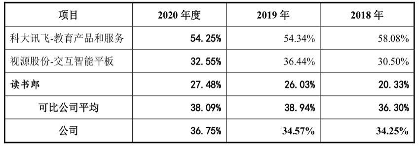 近三年时间内,优学天下综合毛利率分别为34.25%、34.57%、36.75%,虽保持逐年增加,但仍不及同行业可比上市公司毛利率平均水平。