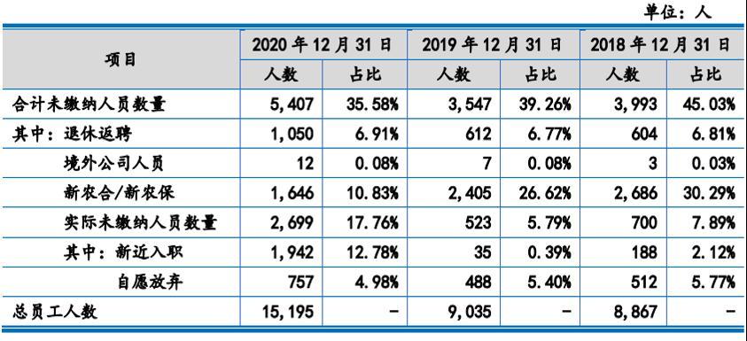 《投资时报》研究员注意到,该公司还存在未为部分员工缴纳社会保险费和住房公积金的情况。报告期各期末,该公司缴纳社会保的比例分别为54.97%、60.74%、64.42%,缴纳住房公积金的比例为2.86%、66.26%、64.17%。