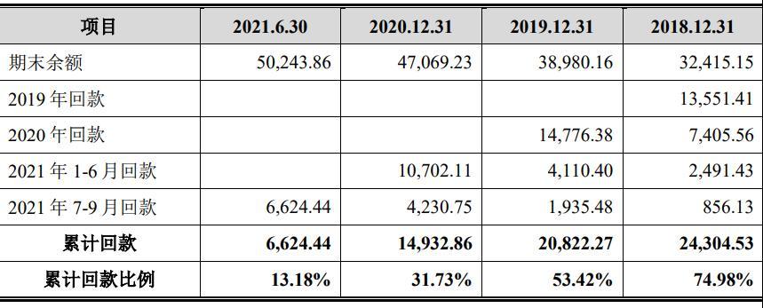 同时,报告期各期,港通医疗应收账款期后累计回款比例分别为74.98%、53.42%、31.73%和13.18%。港通医疗在2018年末的应收账款,截至2021年9月末已累计回款2.43亿元,累计回款比例为74.98%。而2019年后的应收账款回款比例偏低。