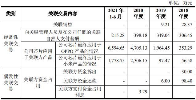 同时,该公司关联交易也出现变化。招股书显示,帝奥微不存在与小米、 OPPO直接交易的情形,但存在公司芯片最终应用于小米和OPPO的情况。2018年至2020年,帝奥微芯片应用于小米产品的金额由56.58万元增至2306.15万元,应用于OPPO产品的金额则从353.29万元增至4705.13万元。