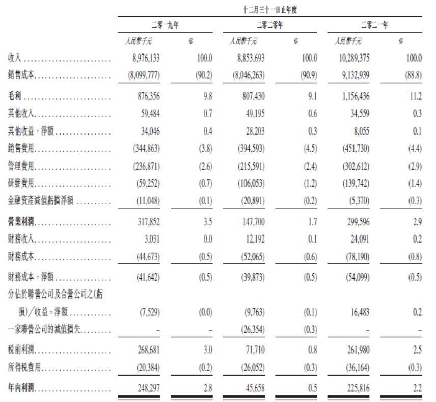 查阅百果园招股书,《投资时报》研究员注意到,2019年、2020年及2021年(下称报告期),百果园营业收入不断增加,在2021年甚至突破百亿。然而,该公司净利润率尚不及3%,依靠加盟模式极速扩张也使得公司内部管理压力较大。