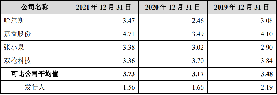 但是,该公司存货周转率却均低于可比公司均值。数据显示,希诺股份存货周转率分别为2.19、1.66与1.56,而行业可比公司存货周转率均值分别为3.48、3.17、3.73。