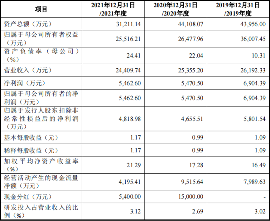 查阅伟康医疗招股书,《投资时报》研究员注意到,2019年、2020年、2021年(下称报告期),伟康医疗主营业务收入、净利润持续下滑,毛利率也呈现波动下降的趋势。另外,公司的专利数量较少且研发投入较低。值得注意的是,伟康医疗由实控人百分百控股,并进行多次大额分红。