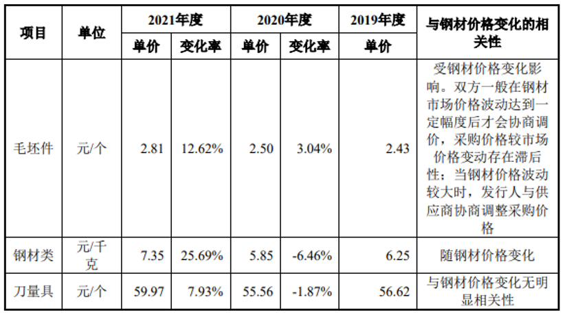 报告期内,夏厦精密直接材料在主营业务成本中的占比分别为47.84%、47.98%和51.55%,直接材料价格波动对产品成本影响较大。齿轮生产主要原材料包括毛坯件、钢材类、刀量具,这三类主要材料在报告期内价格分别上涨了15.64%、17.60%和5.92%,原材料价格分别出现不同程度的上涨,如果原材料价格上涨的趋势继续延续,夏厦精密的整体盈利水平将受到影响。