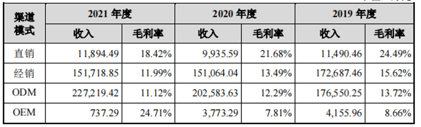 查阅创维电器招股书,《投资时报》研究员注意到,2019年、2020年、2021年(下称报告期),创维电器营业收入不断上升,但净利润和毛利率均呈现下降趋势,ODM/OEM业务模式收入占比逐年上升。另外,该公司应收账款和受限资产较多,短期偿债能力不及同行。