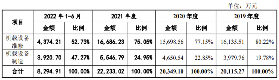 除机载设备维修之外,鹰之航的另一大主营业务是机载设备制造,报告期内该板块收入分别为3979.76万元、4650.54万元、5546.79万元和3920.7万元,占主营业务收入的比例分别为19.78%、22.85%、24.95%和47.27%,呈逐年上涨趋势。
