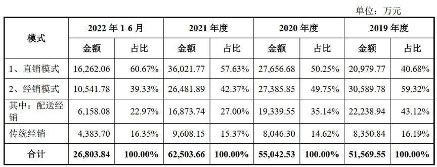 主要产品收入结构的变动,进一步影响到了该公司销售模式收入的变动。由于直接销往公立医疗机构的中药配方颗粒收入逐年增加,导致公司直销收入占比也由期初的四成增至期末的六成。而该公司经销模式销售收入主要来自于中成药产品,所以经销模式的收入逐年下降。