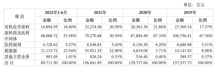 据招股说明书显示,宏源药业是一家集有机化学原料、医药中间体、原料药及医药制剂研发、生产和销售为一体的企业,拥有原料药及医药中间体、新能源、有机化学原料以及医药制剂四块业务。