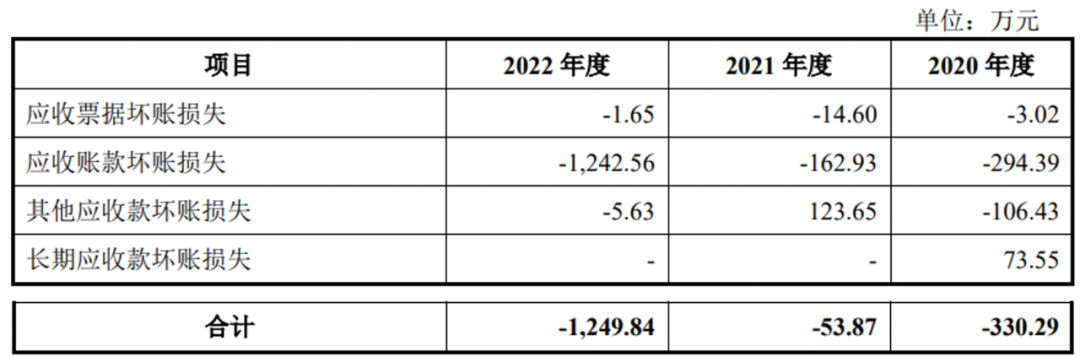 2022年,古麒绒材信用减值损失达1250万元,主要以应收账款坏账损失为主