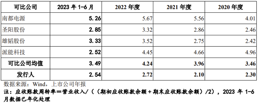 由此,双登股份应收账款周转率始终较低,在同业可比公司中垫底。报告期各期公司应收账款周转率分别为2.3、2.1和2.72,而同期同业可比公司平均水平均在4左右。