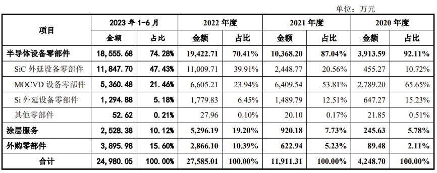 深圳市志橙半导体材料股份有限公司(下称志橙股份)是国内半导体设备用碳化硅零部件领域领先企业,公司自成立以来主要研发、生产、销售用于半导体设备的碳化硅涂层石墨零部件产品,并提供相关碳化硅涂层服务。2022年,该公司市场份额在中国市场排名第三,在全球市场排名第八,在中国企业中均排名第一。