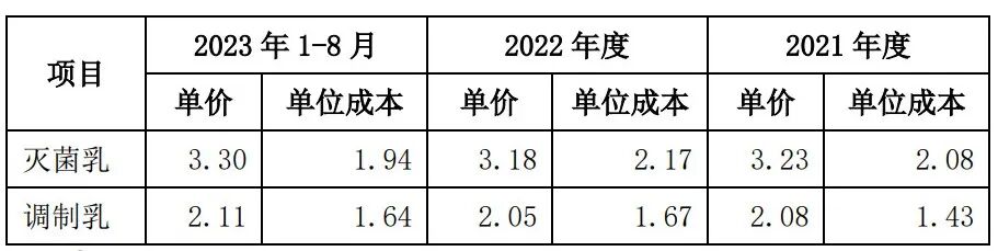 标点财经研究员注意到,灭菌乳、调制乳两款核心产品的毛利率2022年同步下降,2023年同步回升,这背后是采购成本的变化。该公司采购成本中,七成左右为采购生鲜乳的成本,灭菌乳、调制乳两款产品2022年单位成本分别出现6.79%、16.95%的涨幅,2023年1—8月单位成本分别出现12.95%、1.68%的降幅。