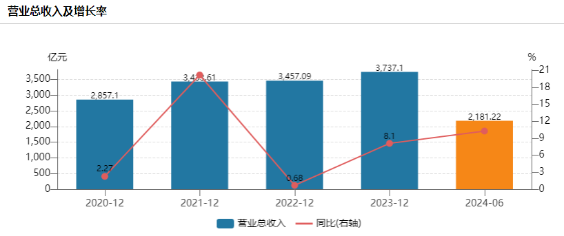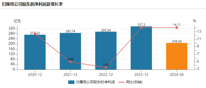 既往财务数据显示,2020年—2023年,美的集团分别实现营业收入2842.21亿元、3412.33亿元、3439.18亿元和3720.37亿元,分别同比增长2.16%、20.06%、0.79%和8.18%;分别实现归母净利润272.23亿元、285.74亿元、295.54亿元和337.20亿元,分别同比增长12.44%、4.96%、3.43%和14.10%。