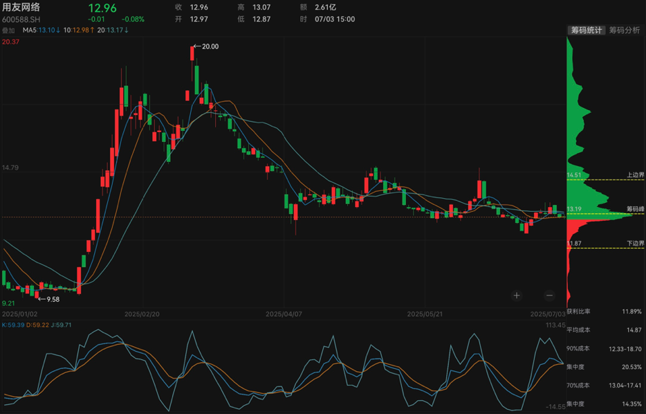 二级市场方面,2025年初,受益于“DeepSeek”概念爆火,用友网络股价在一个半月内涨幅达101%,但随后持续回调。6月12日,金蝶国际(0268.HK)市值攀升至504亿港元(约461亿元人民币),首度超过用友网络。截至7月8日收盘,用友网络收报13.09元/股(不复权),总市值约为446亿元,公司股价较2020年高点已下挫约75%,处于历史低位水平。