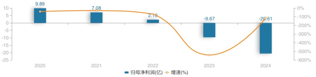 2020年至2024年用友网络归母净利润及同比情况(亿元、%)