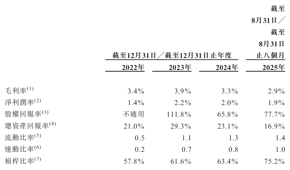在产业链中话语权较弱导致的另一个结果是资金占用比例较高。据招股书披露,截至2024年末,公司应收款项与应收票余额为1.75亿元,同比增长86%,至今年8月末虽然有所下降,但仍达1.48亿元。公司贸易应收款项及应收票据周转天数也从2022年的0.6天拉长至2024年的12.5天,至2025年8月末进一步提升至13.9天。这在一定程度上意味着公司资金面临一定压力。