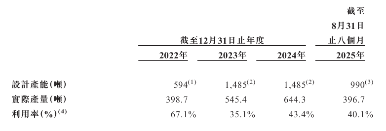 产能利用率方面,招股书显示,公司2023年和2024年的产能利用率已经分别降至35.1%和43.4%,2025年前八个月为40.1%,处于较低水平。即便如此,公司存货增长仍然显著,截至2024年末为1.21亿元,同比增长超65%,截至2025年8月末进一步增长为1.26亿元。