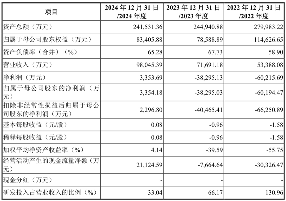 投资时间网、标点财经研究员注意到,百奥赛图在2024年实现扭亏,主要源于公司研发费用大幅降低。招股书显示,报告期内百奥赛图的研发投入分别为6.99亿元、4.74亿元、3.24亿元,占营收的比例分别为130.96%、66.17%、33.04%。