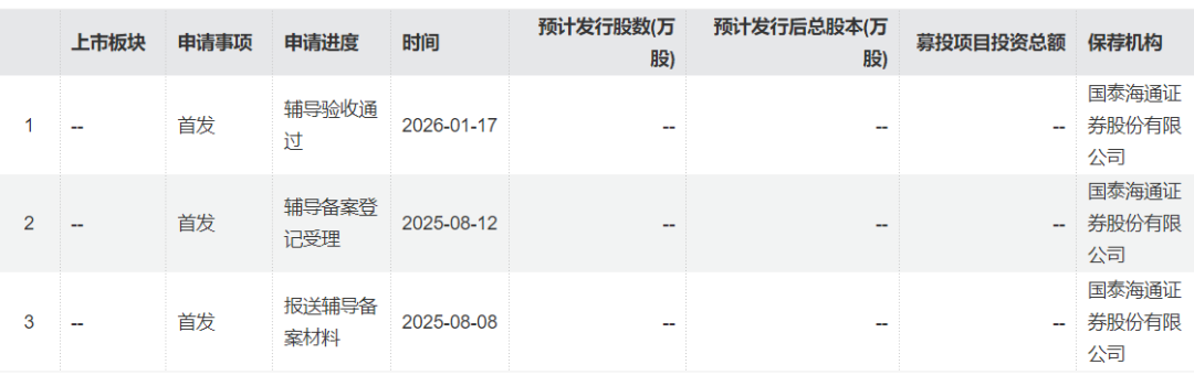 投资时间网、标点财经研究员看到,2025年8月8日,中科宇航与国泰海通证券签署协议,正式开展上市辅导工作。从备案到完成辅导,中科宇航仅用时5个月左右,速度与之前完成上市辅导的蓝箭航天不相上下。