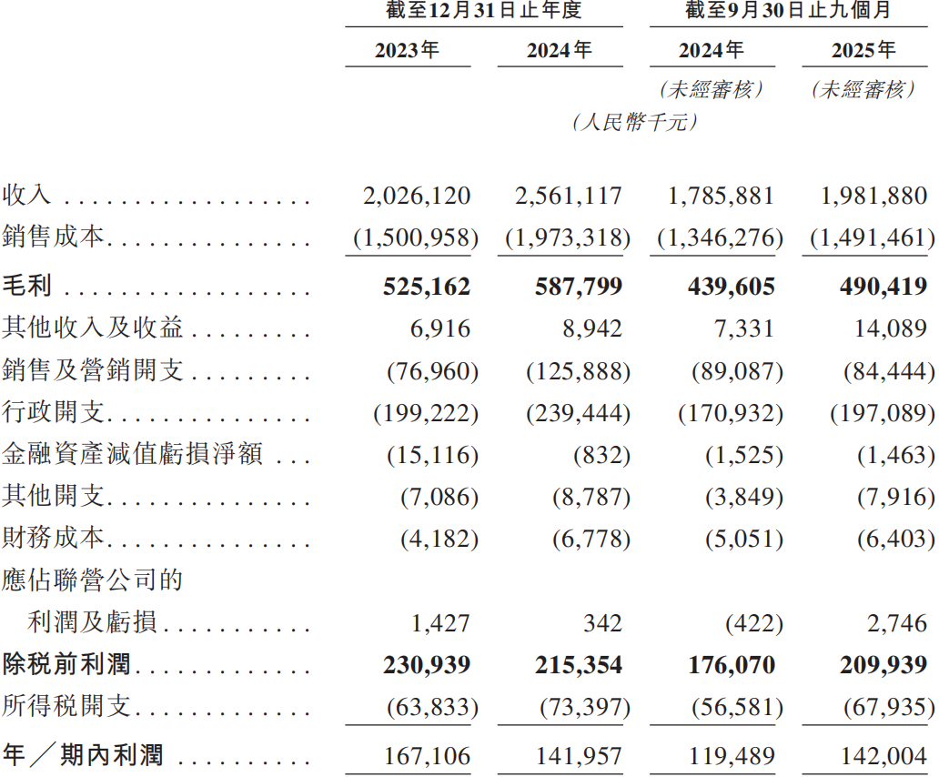 然而,袁记食品的财务基本面却传递出更为复杂的信号。从表面看,袁记食品营收规模持续扩张,2023年收入为20.26亿元,2024年同比增长26.4%至25.61亿元,2025年前三季度收入19.82亿元,同比增长11.0%,保持着增长势头。