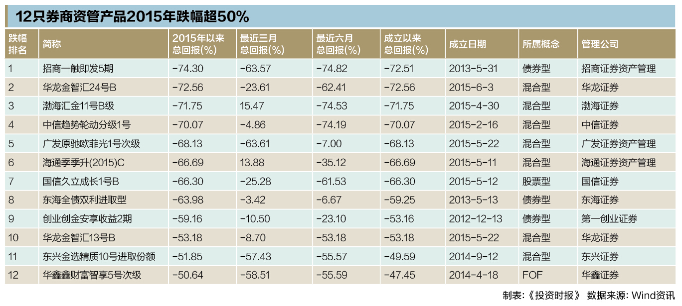 此外,海通季季升(2015)C、国信久立成长1号B、东海全债双利进取型、创业创金安享收益2期、华龙金智汇13号B、东兴金选精质10号进取份额、华鑫鑫财富智享5号次级的净值跌幅也均在50%以上。