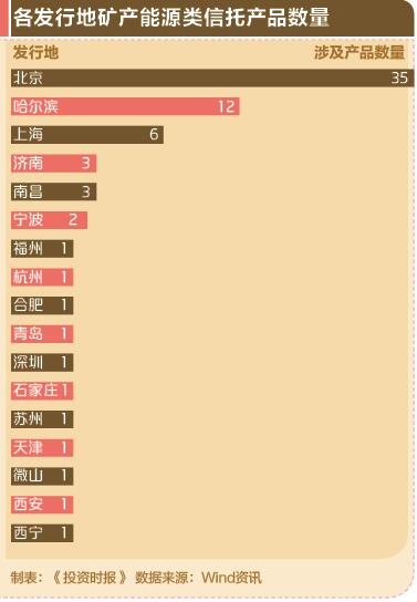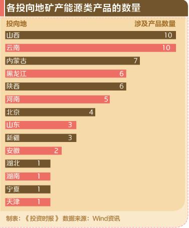 投向内蒙古的产品共有7只,如中融国际信托发行的大石圈煤矿信托贷款结构化信托,所募集资金用于向借款人内蒙古准格尔旗大石圈煤矿有限责任公司发放信托贷款。投向黑龙江和陕西的产品各有6只,包括中融国际信托的多只融源系列产品、陕国投发行的汉锦18号华航能源公司煤化工项目贷款信托等。此外,产品投向地还包括河南、北京、山东、新疆、安徽、湖北、湖南、宁夏和天津。