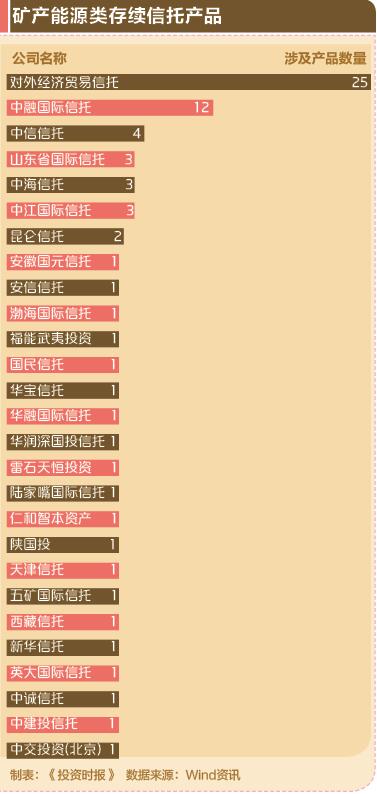 2015年国内煤炭市场供需严重失衡,全行业陷入产能过剩阶段。煤炭工业协会直接统计的90家大型煤炭企业利润只有51.3亿,比2014年同期减少500亿,下降了90.7%。显然,矿产能源市场的不景气仍在持续,所涉及的信托产品危机四伏。那么,此类高风险的产品都涉及哪些信托公司?