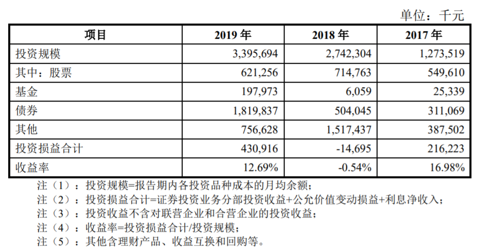 2019年,国联证券的自营业务中,投资规模变化较大的是债券和其他项,其中债券投资规模为18.20亿元,同比增加2.61倍,其他项投资规模为7.57亿元,同比下降50.10%。该公司称,随着公司逐步加大债券投资力度以及IPO补充资本金扩大债券投资规模,公司投资业务波动幅度将有效降低。