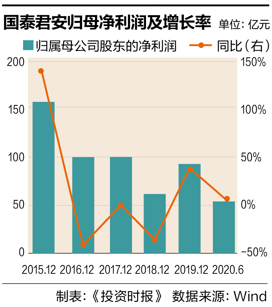 《投资时报》研究员注意到,国泰君安2019年营业收入增长主要来自经纪业务和投行业务。该公司实现经纪业务收入56.3亿元,增幅为28.53%;实现投行业务手续费净收入25.93亿元,同比增长29.06%。