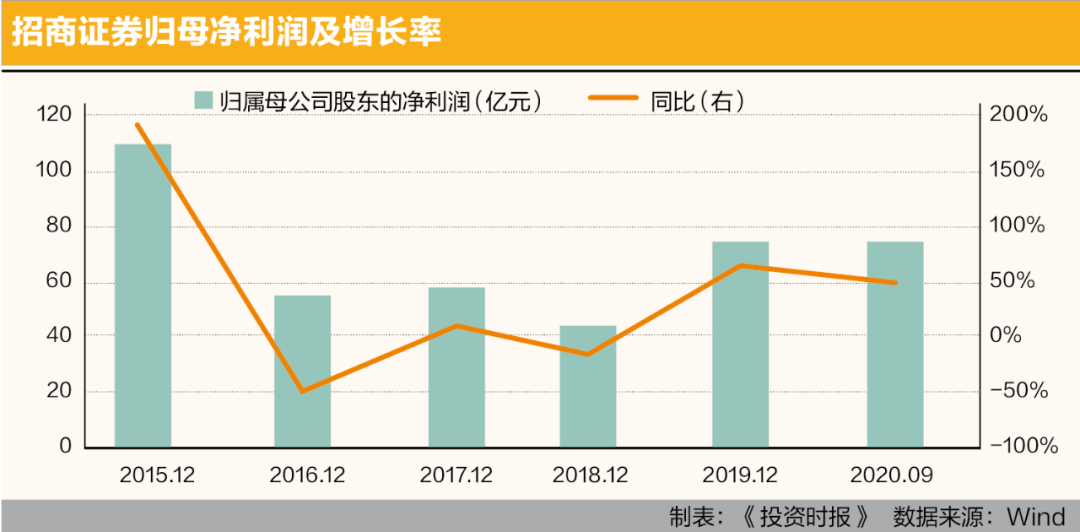 2019年,招商证券归属于母公司股东净利润为72.82亿元,同比增64.57%;营业收入为187.08亿元,同比增65.24%。不过,2019年招商证券业务及管理费为75.37亿元,同比增幅达33.05%。