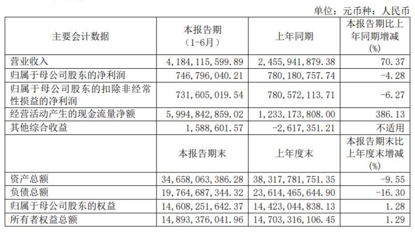 红塔证券上半年主要会计数据