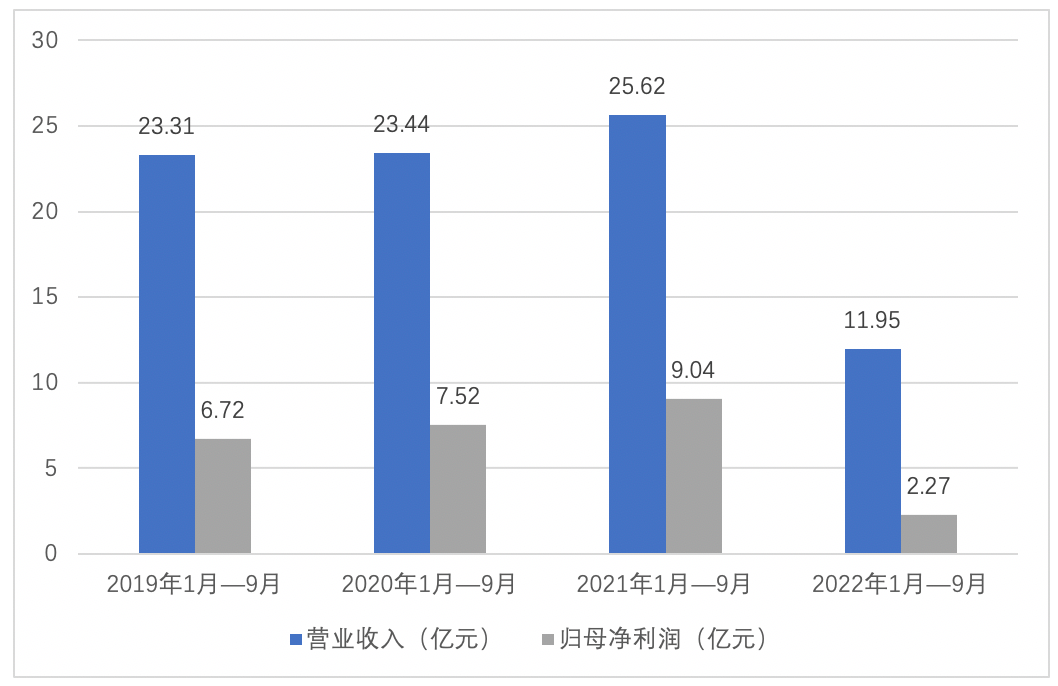 这是自2019年以来,该公司前三季营收和归母净利润首次出现下滑。2019年—2021年各年度前三季,西南证券的营业收入依次为23.31亿元、23.44亿元、25.62亿元,同比分别增长14.04%、0.53%、9.33%;归母净利润依次为6.72亿元、7.52亿元、9.04亿元,同比分别增长126.26%、11.98%、20.17%。可以看出,该公司2022年前三季取得的营业收入尚不及过去三年各年度同期营收的一半,归母净利润则是刚达甚至不达过去三年各年度同期归母净利润的1/3。