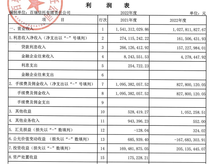 2022年,与行业相较,百瑞信托的业绩并未有亮眼表现。