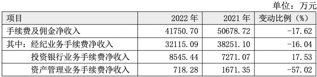 其中,经纪业务手续费净收入为3.21亿元,同比下降16.04%;投资银行业务手续费净收入为8545.44万元,同比增加17.53%;资产管理业务手续费净收入为718.28万元,同比下降57.02%。