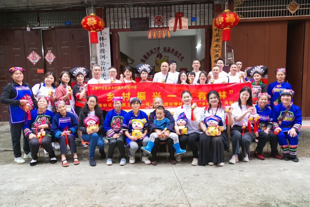 2022年,华林证券联合深圳市乡村振兴共同富裕促进中心,以广西上林的非物质文化遗产“渡河公”为载体,结合上林茶叶产业,融入全新的文创产品设计理念,在传承非遗根脉之余,将激活当地产业资源与农村家庭妇女创收有机结合,为当地村民带来了实打实的经济收益。