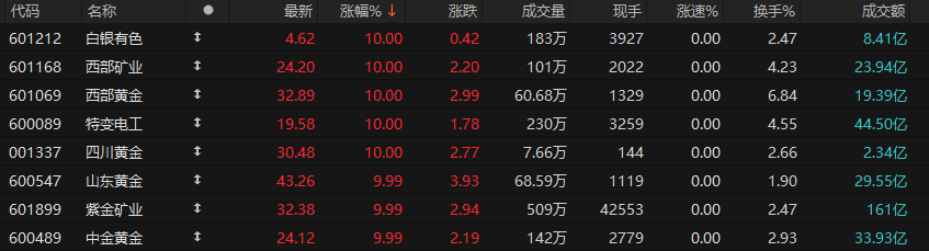 随着国际金价走高,多只港股黄金股长假期间表现优异,录得不错的涨幅。而节后开盘首日即10月9日,包括四川黄金(001337.SZ)、白银有色(601212.SH)、江西铜业(600362.SH)、西部黄金(601069.SH)等在内的A股黄金概念股也均涨停报收,且多只A股股价创下年内新高。